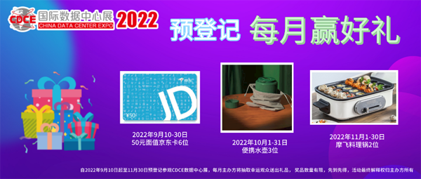 作為數(shù)據(jù)中心行業(yè)年度交流的重要平臺,「CDCE2022國際數(shù)據(jù)中心及云計算展」將于2022年12月1日-3日在上海新國際博覽中心隆重舉行, 現(xiàn)已正式開啟預(yù)登記。據(jù)主辦方透露,即日起至2022年11月30日預(yù)登記參觀CDCE2022,每月主辦方將隨機(jī)挑選幸運觀眾送出京東卡、便攜式燒水壺、摩飛料理鍋等好禮,期待您的到來!