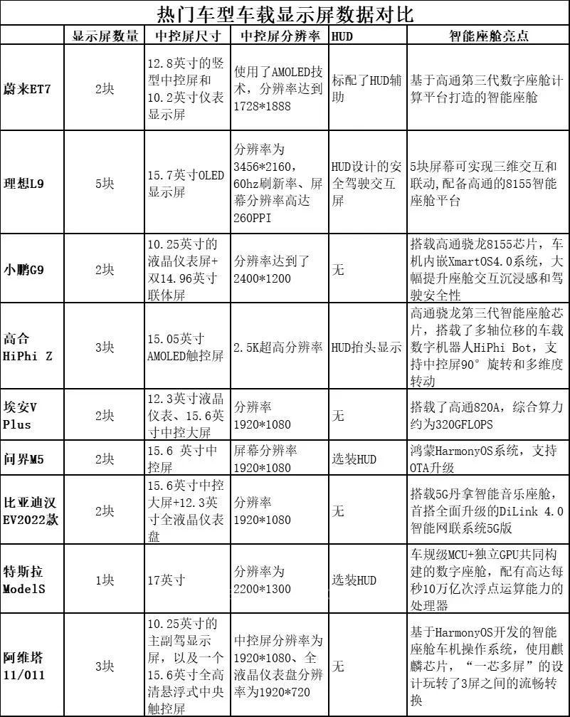深圳市航盛電子股份有限公司董事長(zhǎng)楊洪在接受《中國(guó)汽車報(bào)》記者采訪時(shí)說:“以前車載顯示屏都是小尺寸,以7英寸、8英寸為主,基本不超過10英寸。但這幾年顯示屏尺寸越做越大,10英寸、12英寸、15英寸、16英寸、17英寸、甚至30英寸以上?!?BR>近日,《中國(guó)汽車報(bào)》記者梳理了9款熱門車型的車載顯示屏并進(jìn)行比對(duì)后發(fā)現(xiàn),目前市面上新車型的車載顯示屏基本都在10英寸以上,大屏甚至成為了某些車企新上市車型的一個(gè)賣點(diǎn)。