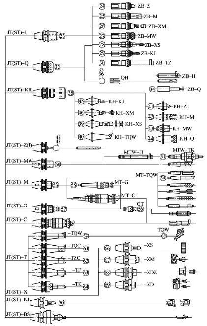 數(shù)控工具系統(tǒng)是高柔性化的加工系統(tǒng),刀具數(shù)量多,要求更換迅速。因此,刀輔具的標(biāo)準(zhǔn)化和系列化十分重要。發(fā)達(dá)國家對刀輔具的標(biāo)準(zhǔn)化和系列化都十分重視,不少國家不僅有國家的標(biāo)準(zhǔn),而且一些大的公司也都制訂了自己標(biāo)準(zhǔn)和系列。我國除了已制定的標(biāo)準(zhǔn)刀具系列外,還建立了TSG82數(shù)控工具系統(tǒng)。該數(shù)控工具系統(tǒng)是一個聯(lián)系數(shù)控機床(含加工中心)的主軸與刀具輔助系統(tǒng)。編程人員可以根據(jù)數(shù)控機床的加工范圍,按標(biāo)準(zhǔn)刀具目錄和標(biāo)準(zhǔn)工具系統(tǒng)選取和配置所需的刀具和輔具,供加工時使用。