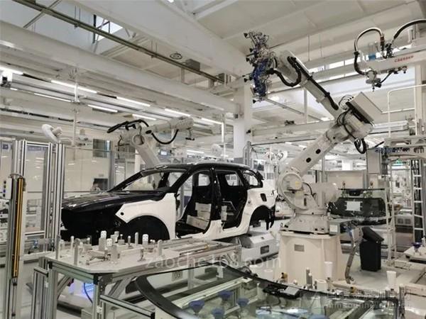 在擋風(fēng)玻璃安裝環(huán)節(jié),紅旗工廠實(shí)現(xiàn)了全流程自動(dòng)化安裝,采用兩個(gè)機(jī)械臂作業(yè):一個(gè)負(fù)責(zé)抓取、涂膠、對(duì)接等工作,一個(gè)安裝視覺(jué)導(dǎo)引系統(tǒng)。兩個(gè)機(jī)械臂共同作業(yè),將大大提高擋風(fēng)玻璃安裝時(shí)的精準(zhǔn)度。