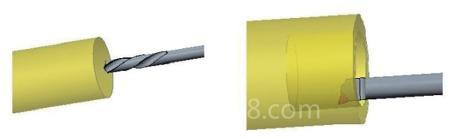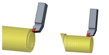 14)鉆車刀鉆通孔,在即將鉆通時,切記一定要降低進給量(降低50%),以免造成刀片破損。