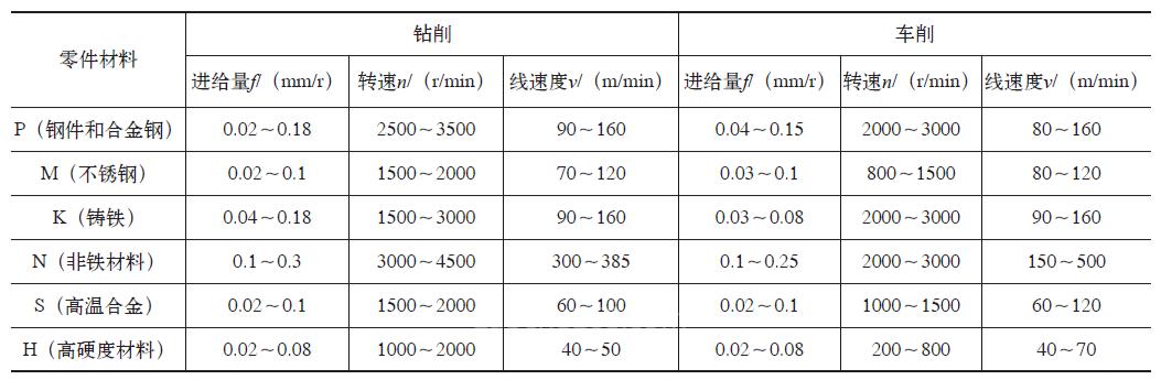 7)使用鉆車刀時,要根據(jù)不同的零件材料,選擇合適的切削參數(shù)(見表1)[3]。