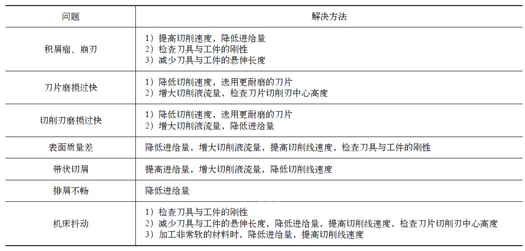 9)使用鉆車刀加工時,會出現(xiàn)各種問題,各種問題及對應(yīng)的解決方法見表2。