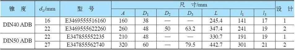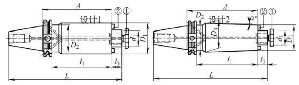2)小前端面直徑D1,符合ISO 3937,適用于山高B型三面刃銑刀。