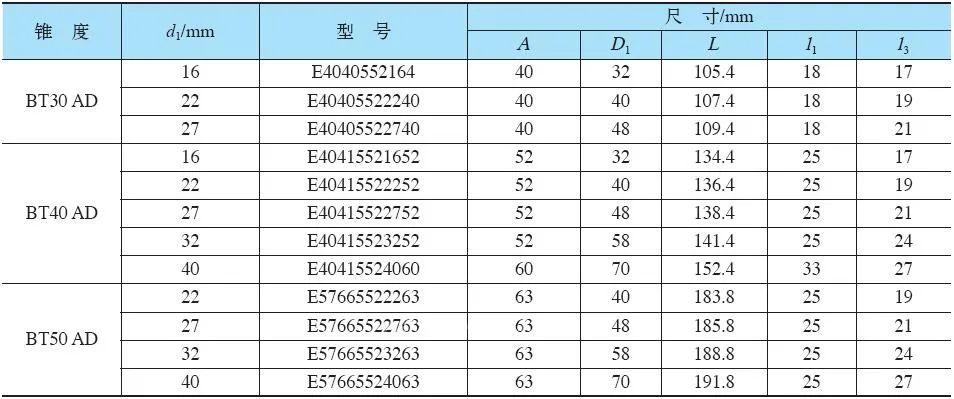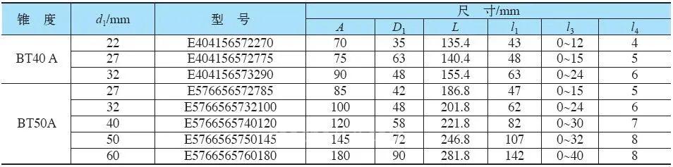 表8-10 5525/5524型-減振面銑刀柄規(guī)格