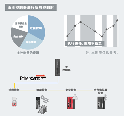 如果用主控制器進(jìn)行所有控制,會(huì)導(dǎo)致負(fù)荷加大,執(zhí)行緩慢,周期不穩(wěn)定。