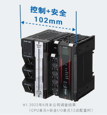 NX系列在兼顧了控制與安全的同時(shí),寬度也僅有102mm。相較于其它公司的產(chǎn)品,尺寸縮減了48%*1,有助于實(shí)現(xiàn)設(shè)備小型化,減少占地面積。
