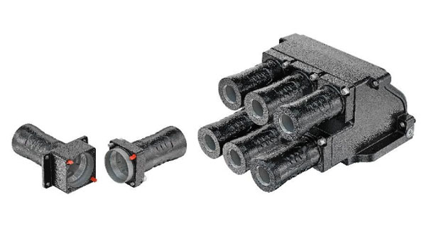 將這些產(chǎn)品結(jié)合起來可以在 HPR 外殼中創(chuàng)建具有 IP68/69 防護等級的高性能連接器,當單極與 Han-Modular? 支撐框架結(jié)合時,它還可以并行傳輸電力、信號和/或數(shù)據(jù)。 一個 VarioShell 中最多可容納 8 個帶 250 A 或 350 A 插芯的單極、最多 6 個帶 650 A 插芯的單極或最多兩個模塊化支撐框架。