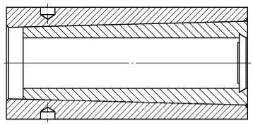 模套的加工路線:下料→車(chē)(留調(diào)質(zhì)量)→調(diào)質(zhì)→車(chē)(內(nèi)外徑留磨量,長(zhǎng)度留量0.5~1mm)→劃線→鉗工→淬火、回火(37~42HRC)→清洗→內(nèi)磨(內(nèi)徑,內(nèi)錐)→車(chē)(將模套、三瓣模、底座三件合裝之后,底面加工平整)。