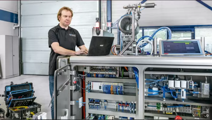 Foodjet 公司工程師 Ed de Leur 正在設(shè)置 MDL 系統(tǒng)?!拔覀儽仨氃谧钋‘?dāng)?shù)臅r機(jī)將適量的調(diào)味汁推過數(shù)十個噴嘴。我實在想不出還有什么比基于 PC 的控制技術(shù)更適合實現(xiàn)這項具有挑戰(zhàn)性的任務(wù)。”