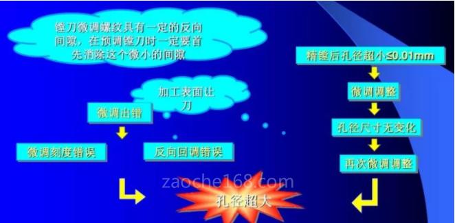 一是刀具磨損。刀具連續(xù)切削,易出現(xiàn)磨損和破損,降低孔加工的尺寸精度;同時(shí),微調(diào)進(jìn)給單元標(biāo)定出現(xiàn)異常,導(dǎo)致調(diào)整誤差使加工孔徑出現(xiàn)偏差。