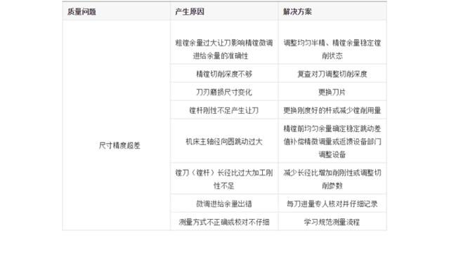 這張表格羅列出了典型鏜孔加工質(zhì)量問(wèn)題分析。