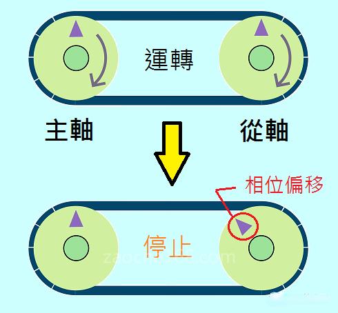 ▲ 圖1平皮帶傳動(dòng) 發(fā)生相位偏移