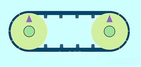 如果只是單純用來(lái)傳輸動(dòng)力(例如引擎中的發(fā)電機(jī)皮帶),相位的偏移并無(wú)關(guān)系;但若作為同步的控制(例如引擎中控制汽門,曲軸與點(diǎn)火時(shí)機(jī)的皮帶),就會(huì)發(fā)生問(wèn)題!以機(jī)構(gòu)而言,要避免相位偏移,可以把一般的皮帶換成正時(shí)皮帶(Timing Belt)跟齒輪!如下圖所示,即使長(zhǎng)時(shí)間運(yùn)轉(zhuǎn),主/從軸的相位都能維持一致!就是彼此達(dá)到同步狀態(tài)!