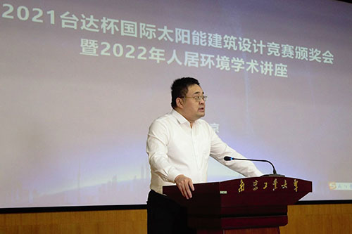 頒獎會伊始,南京工業(yè)大學(xué)副校長陸偉東教授致歡迎時表示,南京工業(yè)大學(xué)建筑學(xué)院辦學(xué)歷史悠久、成果豐碩,為國家建設(shè)提供了大批高水平人才。在實現(xiàn)雙碳目標的宏圖中,如何在建筑學(xué)科的研究、實踐和人才培養(yǎng)中,踐行建筑業(yè)綠色發(fā)展、低碳節(jié)能的責(zé)任擔(dān)當(dāng)和使命,是建筑學(xué)科面臨的重大挑戰(zhàn)及機遇。臺達杯國際太陽能建筑設(shè)計競賽作為優(yōu)秀的設(shè)計和交流平臺,必將對建筑學(xué)科的發(fā)展起到積極的推動作用,希望南京工業(yè)大學(xué)能與競賽一起,為實現(xiàn)雙碳宏偉目標貢獻力量。