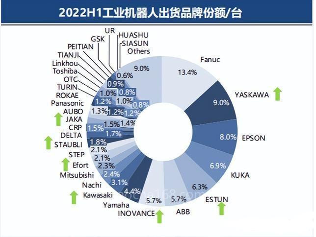 曾經(jīng)機(jī)器人行業(yè)的老四大家:Fanuc,ABB,kuka,Yaskawa巔峰時(shí)期,占據(jù)中國(guó)工業(yè)機(jī)器人80%的市場(chǎng)份額,在汽車、電子市場(chǎng)處于壟斷地位??墒鞘旰?xùn)|十年河西,在國(guó)產(chǎn)品牌快速發(fā)展以及大環(huán)境的幫助下,如今這格局已然不復(fù)存在。在MIR睿工業(yè)最新公布的2022上半年出貨量榜單中,埃斯頓首次超過ABB,進(jìn)入國(guó)際機(jī)器人第一梯隊(duì)。
