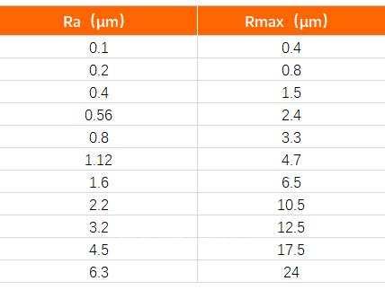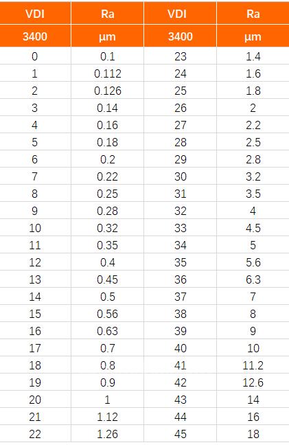 VDI3400標(biāo)準(zhǔn)與Ra對(duì)照表