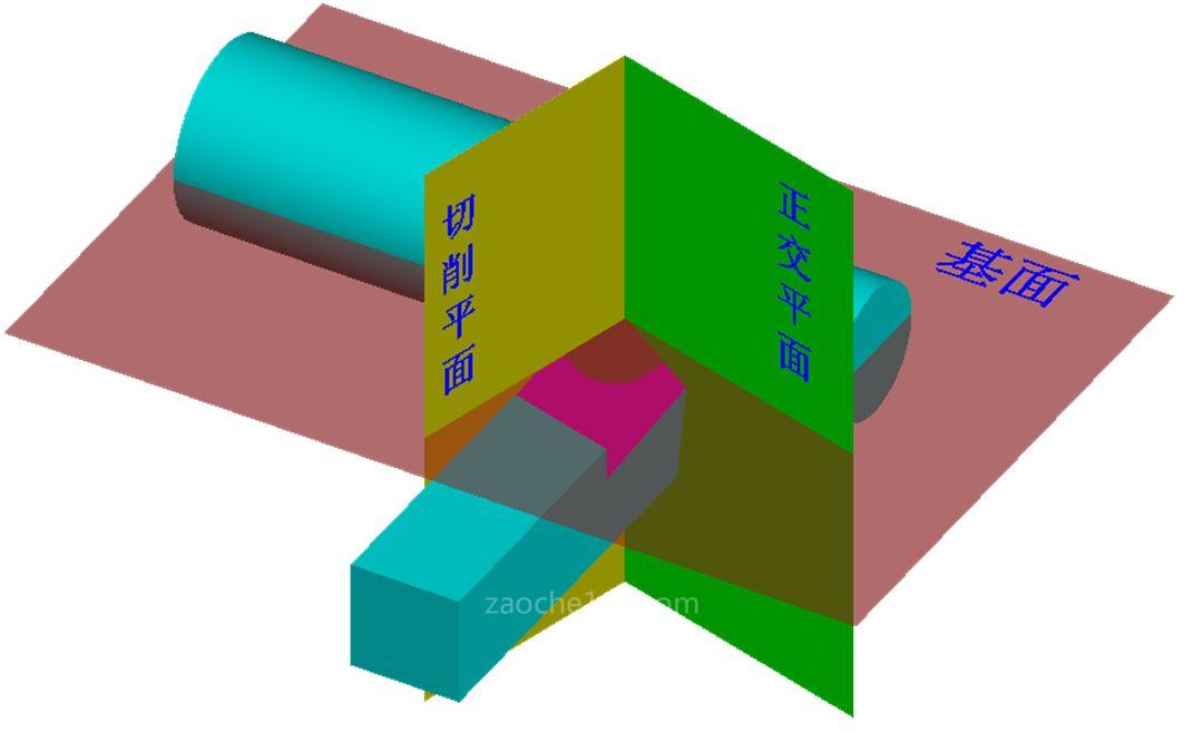 為了確定和測量車刀的幾何角度,需要選取三個(gè)輔助平面作為基準(zhǔn),這三個(gè)輔助平面是切削平面、基面和正交平面。