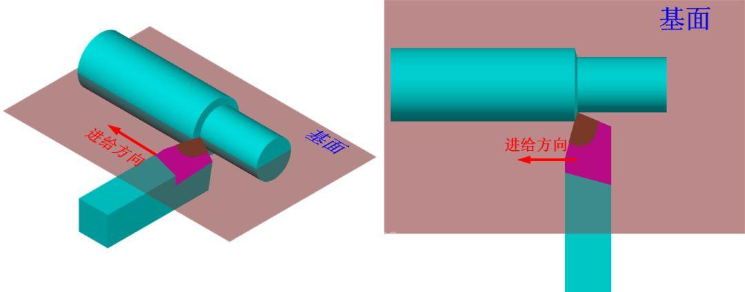 2)基面——過主切削刃的某一選定點(diǎn)并平行于刀桿底面的平面。