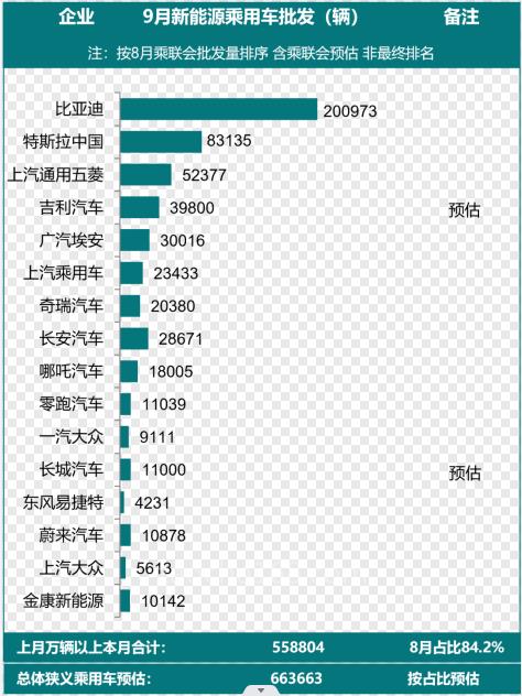 10月9日,乘聯(lián)會發(fā)布新能源乘用車廠商批發(fā)銷量快訊。9月預估全國新能源乘用車批發(fā)銷量約66.4萬輛,環(huán)比8月約增長5%,同比去年9月增長約90%。
