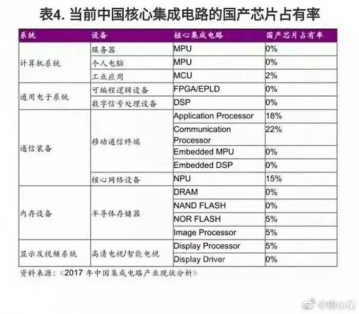 小到平時使用的智能手機,大到登月用的超級計算機,芯片可以說是無處不在。中國芯片市場超過數(shù)千億美元,然而中國核心集成電路國產(chǎn)芯片占有率多項為0,貿(mào)易逆差高達1657億美元。