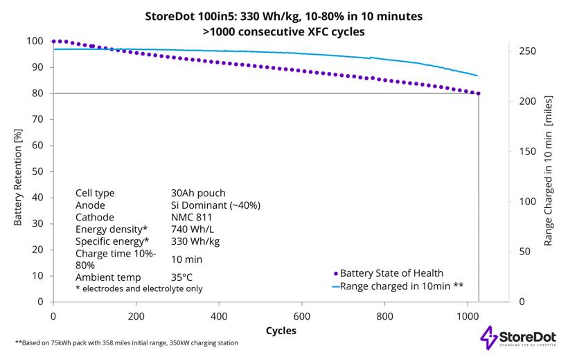 據(jù)外媒報(bào)道,以色列電動(dòng)汽車電池初創(chuàng)公司StoreDot交付出超過1000次循環(huán)的電池,證明了其超快速充電(XFC)電池技術(shù)的卓越性能。