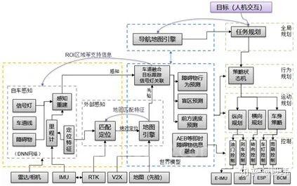 各類自動駕駛公司或者行業(yè)標(biāo)準(zhǔn)都會發(fā)布自己的軟件架構(gòu)設(shè)計,但往往都是根據(jù)現(xiàn)狀閹割后的結(jié)果,并不具有普適性,但為了方便大家理解,我還是把當(dāng)下主流的功能模塊代入進(jìn)來,大家來看看對照關(guān)系,對理解原理更有幫助。