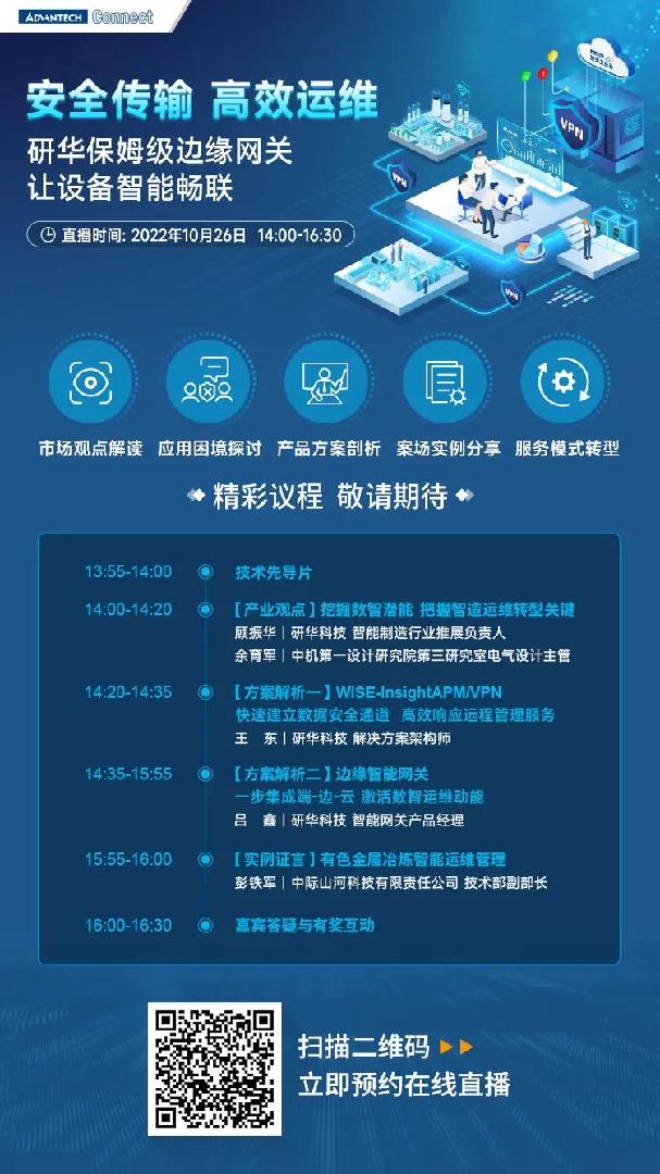 為了進(jìn)一步解決當(dāng)前因場(chǎng)域分散、網(wǎng)域限制、網(wǎng)絡(luò)安全、成本攀升等引發(fā)的數(shù)據(jù)安全、集中遠(yuǎn)程運(yùn)維等問(wèn)題與訴求,10月26日下午14:00研華科技攜手集成商及產(chǎn)業(yè)用戶伙伴舉辦以【安全傳輸 高效運(yùn)維——研華保姆級(jí)邊緣網(wǎng)關(guān) 讓設(shè)備智能暢聯(lián)】為主題的在線直播活動(dòng)。