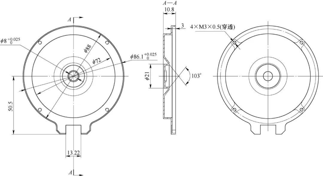 圖1為盤式電動機殼體零件,作為盤式電動機部件的安裝架,其在電動機中起固定、散熱和隔音等作用,其結(jié)構(gòu)設(shè)計及加工精度都會影響到盤式電動機的精度、質(zhì)量和工作性能。