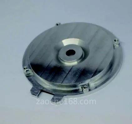 在設(shè)備處于待加工的狀態(tài)下,工作人員準備好所需工件,依照前述加工步驟和方法進行加工。根據(jù)要求加工完成后,使用精度測量工具對工件尺寸及精度進行檢測,均合格。盤式電動機殼體零件實物如圖2所示。