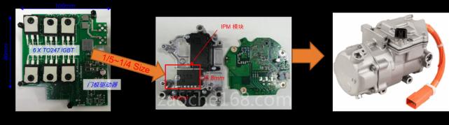 圖3:電子壓縮機(jī)采用安森美的ASPM比采用分立方案顯著縮減尺寸