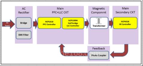 圖示3-大聯(lián)大友尚基于onsemi產(chǎn)品的360W高效電源方案的方塊圖