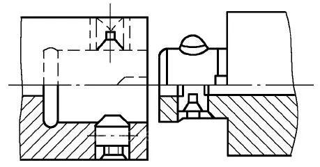 工具系統(tǒng) ABS工具系統(tǒng)是由德國(guó)KOMET公司開發(fā)的,如圖8-31所示,其接口形式為兩模塊之間有一段圓柱配合,起定心作用。在配合孔的一端,同一直徑上有兩個(gè)螺孔,孔中分別裝有帶圓錐頭和圓錐坑的螺釘。在軸線的垂直方向上有一橫向孔,孔中有一夾緊銷可沿軸向滑動(dòng),夾緊銷的兩端制成圓錐頭(或圓錐坑)與螺釘?shù)亩瞬颗浜?,螺釘與夾緊銷的軸線之間有一偏心距離,以達(dá)到軸向壓緊的目的。KOMET公司1990年又將ABS工具系統(tǒng)做了少許改動(dòng),申請(qǐng)了新的專利。其核心內(nèi)容是改進(jìn)了配合孔壁厚,以增加徑向夾緊銷軸向受力時(shí)孔的彈性,從而增加配合部位的軸與孔的公差帶寬度。這樣,夾緊后套筒在滑動(dòng)軸線的橫向,由于彈性變形局部直徑變小而壓向配合軸所對(duì)應(yīng)的區(qū)域。
