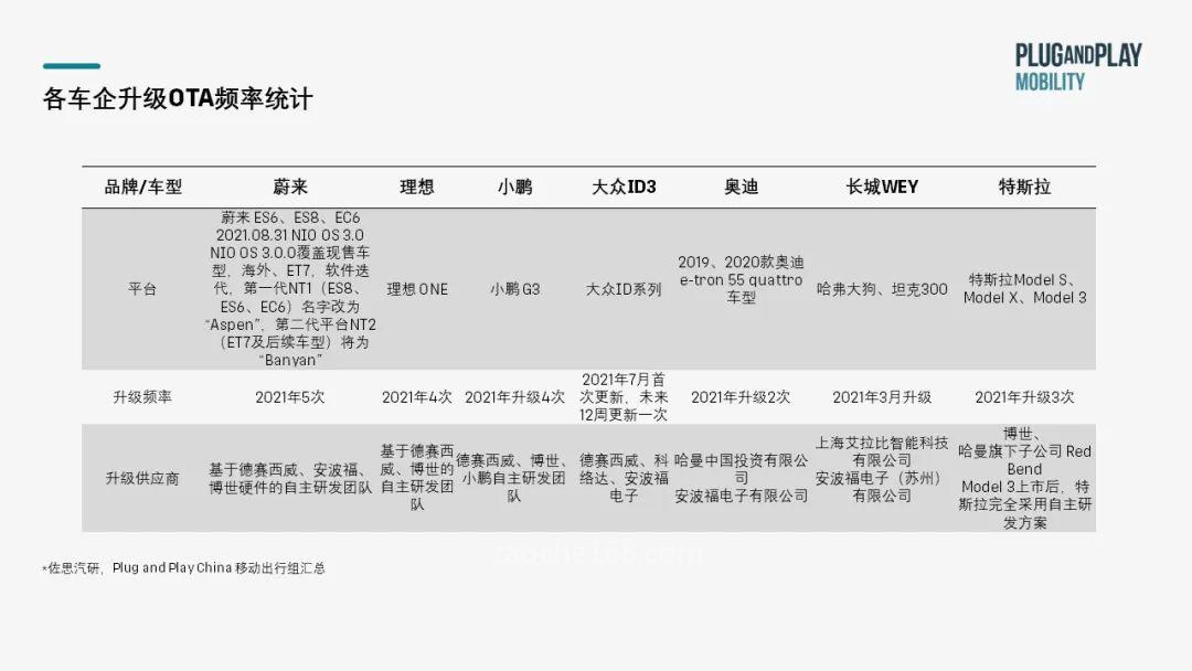 國內(nèi)外車企OTA升級(jí)頻率、內(nèi)容對(duì)比: