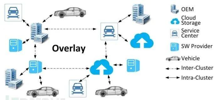 2012年,Mansour等人設(shè)計(jì)了一種診斷和安全OTA系統(tǒng),稱為AiroDiag,用于連接車輛。下圖為AiroDiag的架構(gòu)。AiroDiag架構(gòu)的主要分為:OEM、汽車和云端。AiroDiag采用了對(duì)稱密鑰技術(shù),特別是采用了先進(jìn)的加密標(biāo)準(zhǔn)來保證軟件更新過程中的通信安全。在AiroDiag中,密鑰存儲(chǔ)在OEM端的數(shù)據(jù)庫中。AiroDiag應(yīng)用始終保持與網(wǎng)絡(luò)的連接,處理來自車機(jī)端的任何連接請(qǐng)求。在AiroDiag中,軟件更新過程由客戶端觸發(fā)。一旦觸發(fā)軟件更新過程,車輛首先與OEM建立安全連接。接下來,車輛將告知OEM端當(dāng)前已安裝軟件的版本。如果有新軟件可用,OEM將觸發(fā)軟件更新過程,并與汽車建立安全連接。