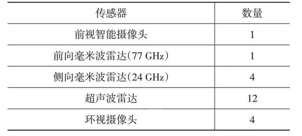 目前量產(chǎn)的自動(dòng)駕駛汽車上的傳感器種類有4種,數(shù)量為22個(gè)(表1)。