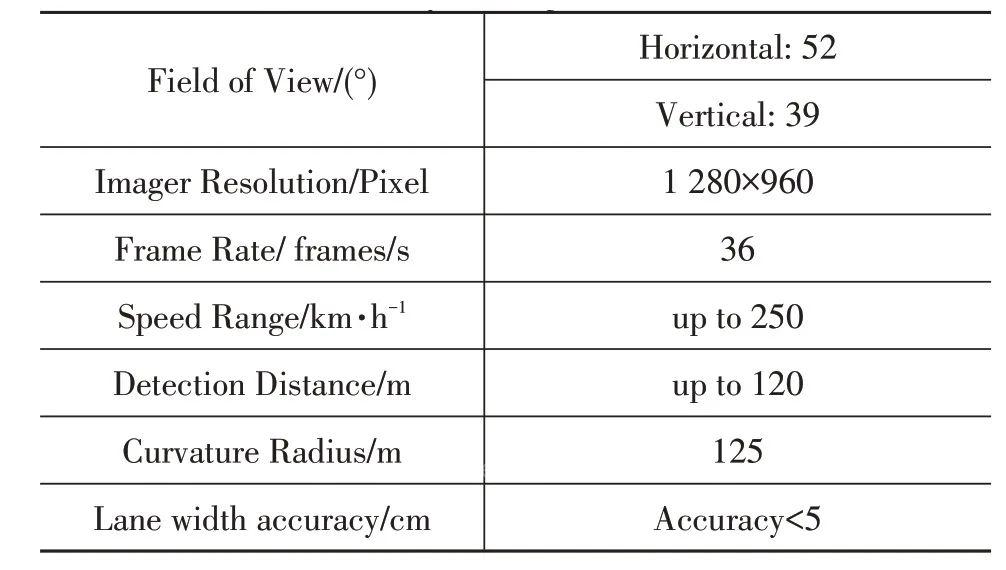 前向智能攝像頭實(shí)現(xiàn)AEB-C(自動(dòng)緊急制動(dòng)-車)、LDW(車道偏離預(yù)警)、LKA(車道保持輔助)、TSR(交通標(biāo)志識(shí)別),實(shí)現(xiàn)L1級(jí)駕駛輔助。道路實(shí)際情況探測(cè)精準(zhǔn)(如車道線、隧道、匝道、限速等),但是距離探測(cè)不精準(zhǔn)。其代表性能參數(shù)見表2。