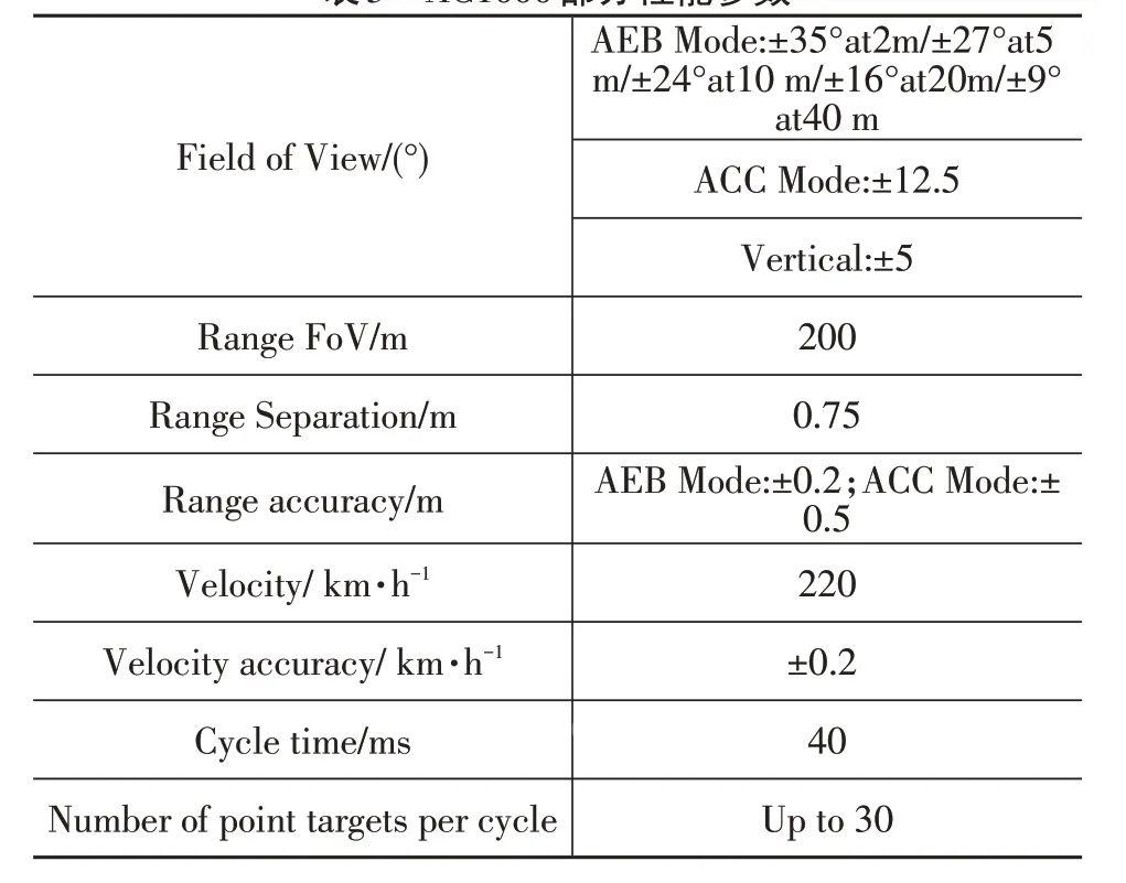 前向毫米波雷達(dá)(77 GHz)實(shí)現(xiàn)ACC(自適應(yīng)巡航)、AEB-C(自動(dòng)緊急制動(dòng)-車)、FCW(前向碰撞預(yù)警),實(shí)現(xiàn)L1級(jí)駕駛輔助。距離探測(cè)精準(zhǔn),但是無法預(yù)測(cè)實(shí)際情況(如車道線、隧道、匝道、限速等)。其代表性能參數(shù)見表3。