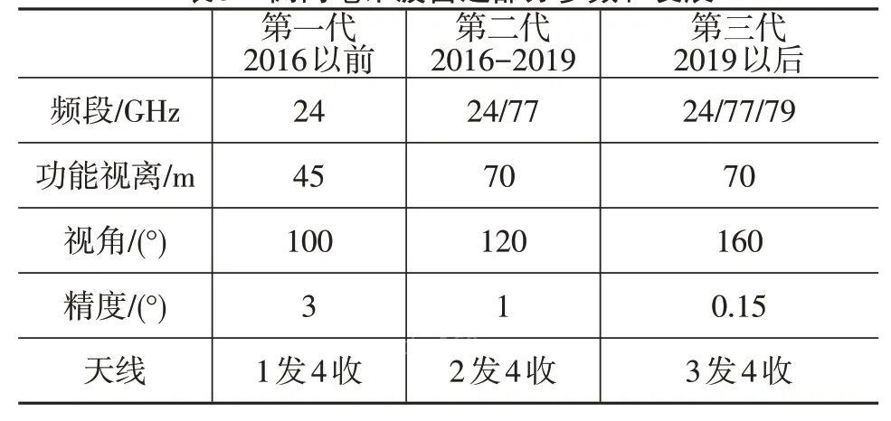 側(cè)向毫米波雷達(dá)(24 GHz)實(shí)現(xiàn)盲區(qū)監(jiān)測(cè)功能,有2種實(shí)現(xiàn)方式。后側(cè)方面2個(gè)毫米波雷達(dá),實(shí)現(xiàn)BSD(盲區(qū)監(jiān)測(cè))、LCW(變道碰撞預(yù)警)、RCTA(后方交通穿行預(yù)警)和DOW(開門預(yù)警)功能;后側(cè)2個(gè)毫米波雷達(dá)+前側(cè)2個(gè)毫米波雷達(dá),除了實(shí)現(xiàn)以上功能外,還能實(shí)現(xiàn)FCTA(前方交叉路口預(yù)警),支持L2級(jí)以上的高級(jí)駕駛輔助功能。隨著科技進(jìn)步,側(cè)向毫米波雷達(dá)性能也在逐步提升,見表5。