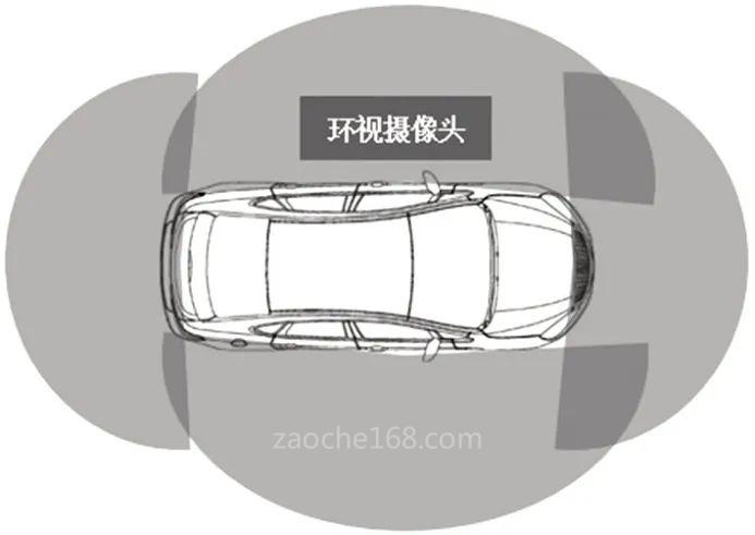 AVM(全景式監(jiān)控影像系統(tǒng))通過前后左右4個(gè)圖像傳感器(環(huán)視攝像頭)采集車輛周邊環(huán)境數(shù)據(jù),將影像通過CVBS(標(biāo)清)/LVDS(高清)傳遞給全景影像控制器。如果僅在后方裝1個(gè)攝像頭,可實(shí)現(xiàn)倒車影像功能。如果同時(shí)在前后左右安裝4個(gè)攝像頭,通過對(duì)4個(gè)攝像頭輸入圖像進(jìn)行畸變校正及裁剪,實(shí)現(xiàn)4個(gè)視圖及2D俯視圖效果集成,3D旋轉(zhuǎn)效果(高清方案)集成,最終通過MP5進(jìn)行顯示。環(huán)視攝像頭部分重要參數(shù)見表7,其布置在整車示意見圖4。