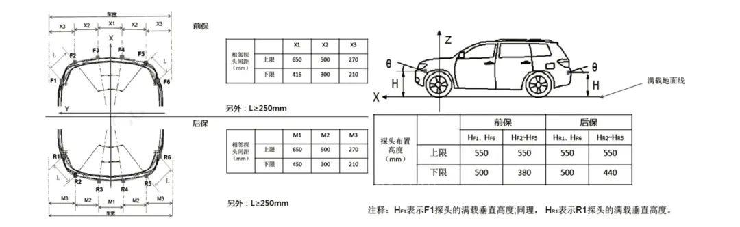 高級(jí)駕駛輔助系統(tǒng)的傳感器除了要保證探測(cè)范圍的覆蓋冗余度,在實(shí)際安裝中,還要符合每個(gè)傳感器和車輛的安裝條件。本文介紹的傳感器布置參數(shù)是基于某款車型、特定供應(yīng)商傳感器產(chǎn)品進(jìn)行的總結(jié)融合。不同傳感器供應(yīng)商,對(duì)布置要求會(huì)有細(xì)微差異,在實(shí)際車型布置過程中,要結(jié)合供應(yīng)商提供的布置要求,以及整車布置、造型,進(jìn)行適應(yīng)性調(diào)整。