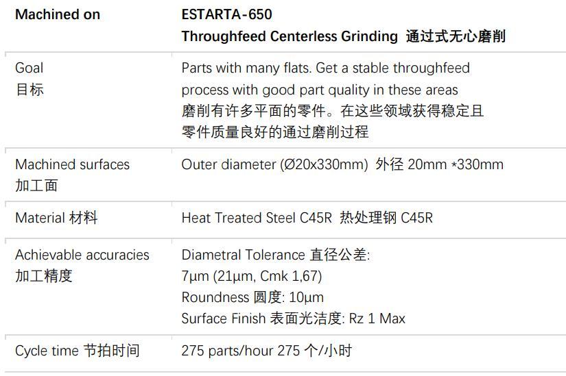 除了磨削液壓元件,汽車轉(zhuǎn)動軸也是達(dá)諾巴特ESTARTA加工的強(qiáng)項。比如ESTARTA-650通過式的無心磨削,這是一種全新理念的外圓無心磨床。它的加工精度可以滿足直徑公差7μm、圓度10μm、表面粗糙度Rz 1μm的要求,且加工效率可以達(dá)到每小時275件。機(jī)器剛性、大砂輪尺寸,超高的通用性和全自動解決方案,共同保證了生產(chǎn)率的高度水平。