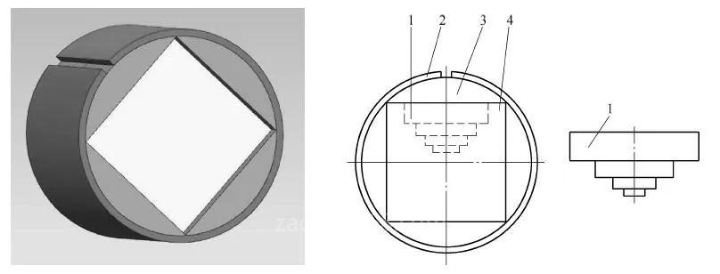 圖1-131 正六面體鏤空件的加工裝夾結(jié)構(gòu)示意
