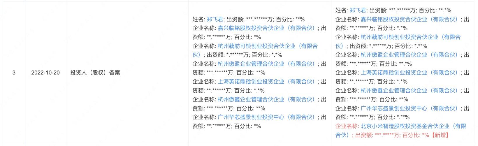 企查查顯示,10月20日,傲芯科技新增北京小米智造股權(quán)投資基金合伙企業(yè)為投資人,后者由小米全資控股。結(jié)合投資界消息,此次為傲芯科技 Pre-A輪融資,由小米獨家投資,金額達(dá)數(shù)千萬元。