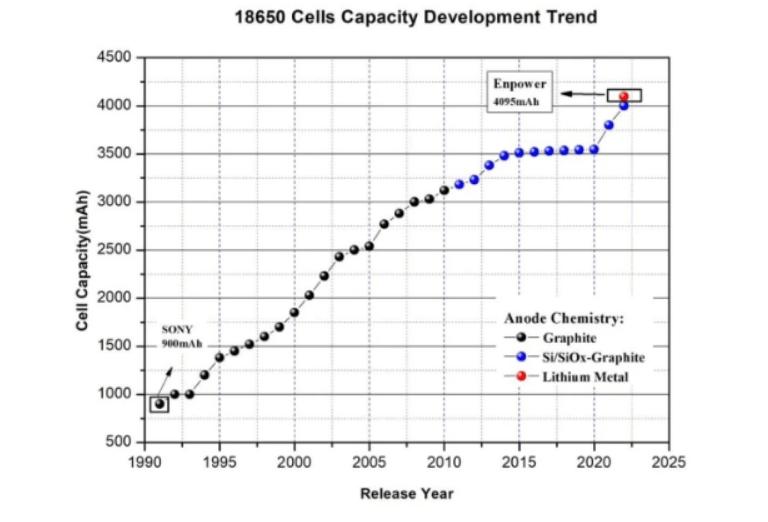 恩力動力研發(fā)的18650圓柱鋰金屬電池(4.1Ah)