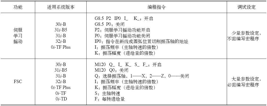 表1 FANUC系統(tǒng)中的伺服學(xué)習(xí)搖動(dòng)功能和FSC功能