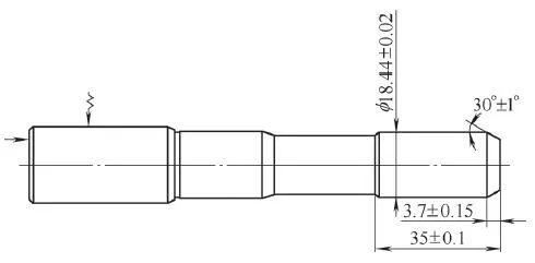 圖1為汽車轉(zhuǎn)向盤內(nèi)的傳動(dòng)軸零件,以3.7mm倒角和φ18.44mm外圓兩處車削為例,常規(guī)的數(shù)控程序如下。