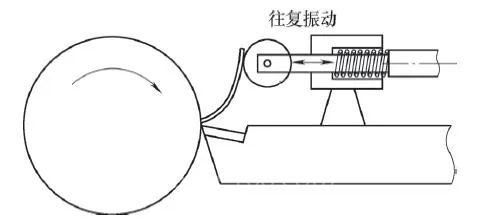 在條件合適的情況下,可設(shè)計(jì)一種機(jī)械阻斷或振動(dòng)阻斷的裝置,安裝在刀桿或刀座上,起到斷屑功能。該裝置一般用于空間較大的零件加工場(chǎng)所,對(duì)加工小零件的緊湊型設(shè)備頗有限制,影響刀具更換等操作。機(jī)械斷屑裝置如圖2所示。