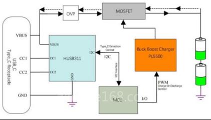 在運(yùn)行時(shí),USB PD DRP控制器HUSB311與MCU建立一個(gè)Type-C端口管理器,也稱為TCPM。由于TCPM的存在,方案可以根據(jù)USB Type-C接入的電子產(chǎn)品類型,自動(dòng)切換其作為主機(jī)、設(shè)備或DRP的角色。此外,HUSB311和PL5500都集成了I2C接口作為從屬設(shè)備。借由微處理器通過I2C接口的通信可以實(shí)現(xiàn)監(jiān)測和高級(jí)配置,例如監(jiān)測PD電源的容量和PDO協(xié)商。而通過PL5500的I2C接口,可以靈活地對充電參數(shù)進(jìn)行編程,如輸入電流限制、輸入電壓限制、充電電流、電池充滿等。