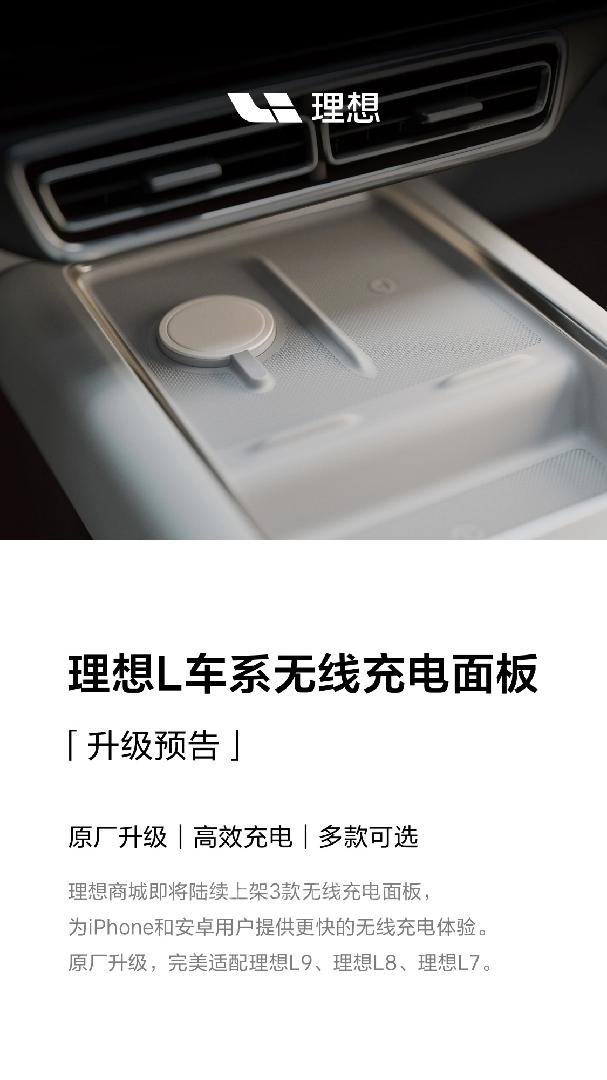 近日,理想宣布將于 11 月 16 日為理想 L9、L8、L7 推出一款 MagSafe 無線充電面板,首發(fā)只有單側(cè)面板,支持磁吸充電連接技術(shù),功率最高可達(dá) 15W。